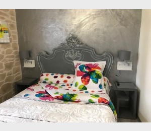 Au 1er étage de la maison, mitoyenne avec la chambre Carmin, la Chambre ARGENT, surnommée aussi « la Chambre de la Princesse » vous offre un lit de 140 avec un vrai ciel de lit d’époque ! D’après l’histoire , une Princesse se serait reposée dans ce lit ! Au 1er étage de la maison , cette chambre surplombe la piscine et l’espace « Piscine et détente »